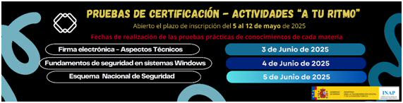Hasta el 12 de mayo de 2025 El Instituto Nacional de Administración Pública (INAP) mantiene abiertas hasta el 12 de mayo tres pruebas de certificación
